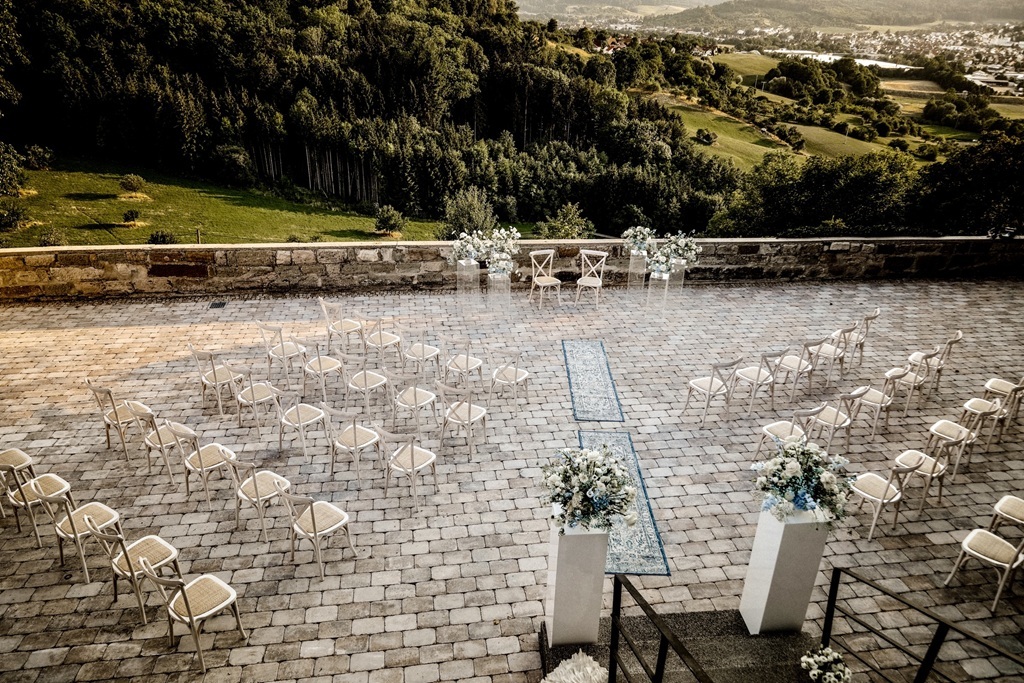 Direkt an der Burg, in unserem wunderschönen Burggarten mit einem herrlichen Blick über das Wieslauftal, stehen Getränke- und Snackautomaten mit leckeren Kleinigkeiten für Sie bereit.